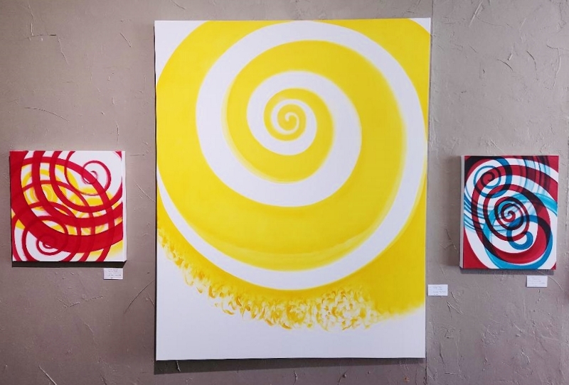 It’s January and time for my show at Subway Gallery in Bisbee, Arizona. Spirals kept calling, while putting dots on rocks engaged unexpected creative impulses, so much so that I had to wean myself off of rocks by putting dots on canvases before continuing with a few more spirals. At the end of 2024 another vision emerged and we’ll see where that takes me in 2025. All paintings are oil on canvas, except for dots which are acrylics.